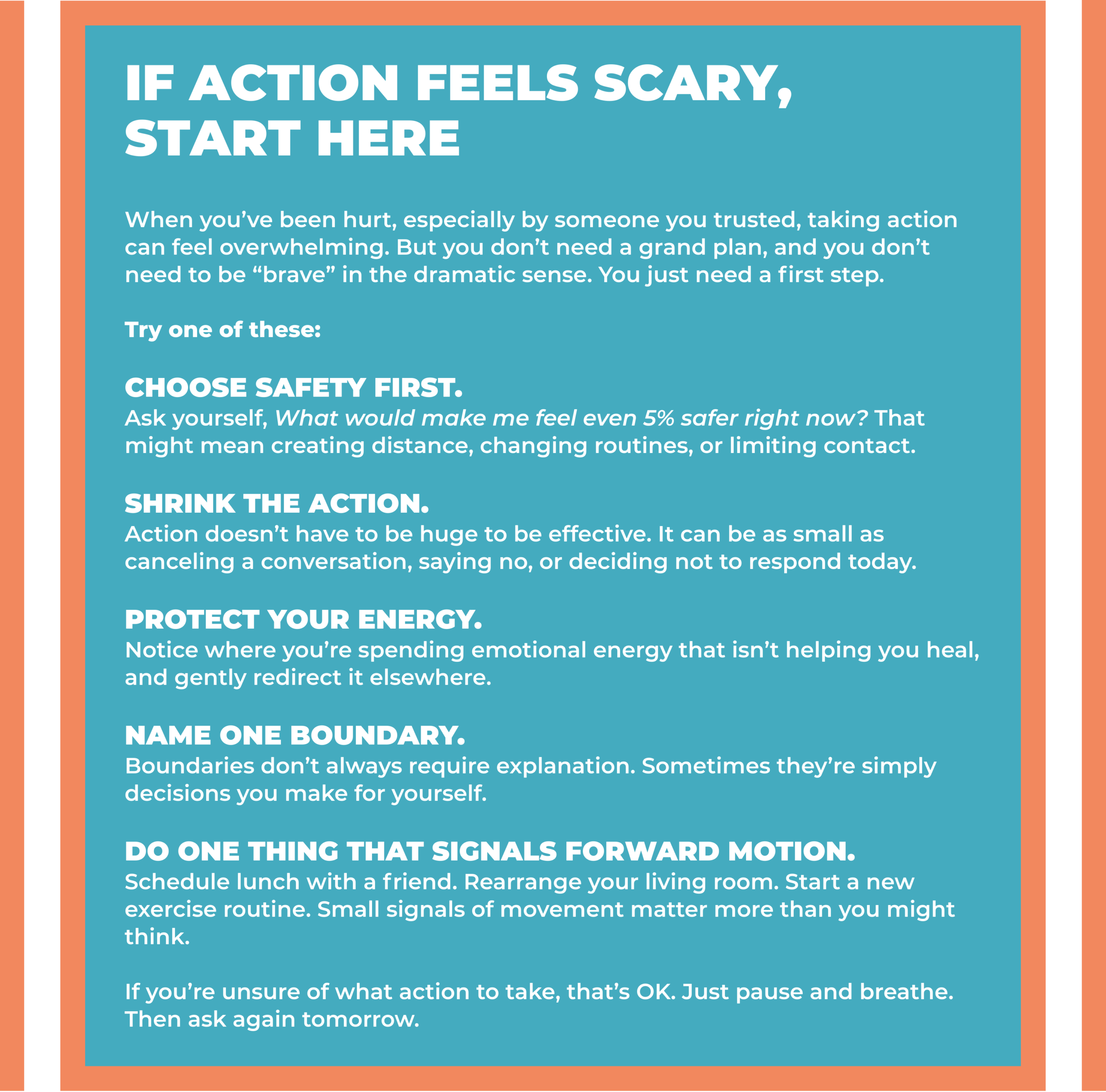 Yes. Profoundly. In my case, taking action meant protecting myself from further harm by removing the person who hurt me from my life. That wasn’t done in anger or haste. It was a measured, self-protective decision. And once I made it, something important happened: Almost instantly, I felt safer.